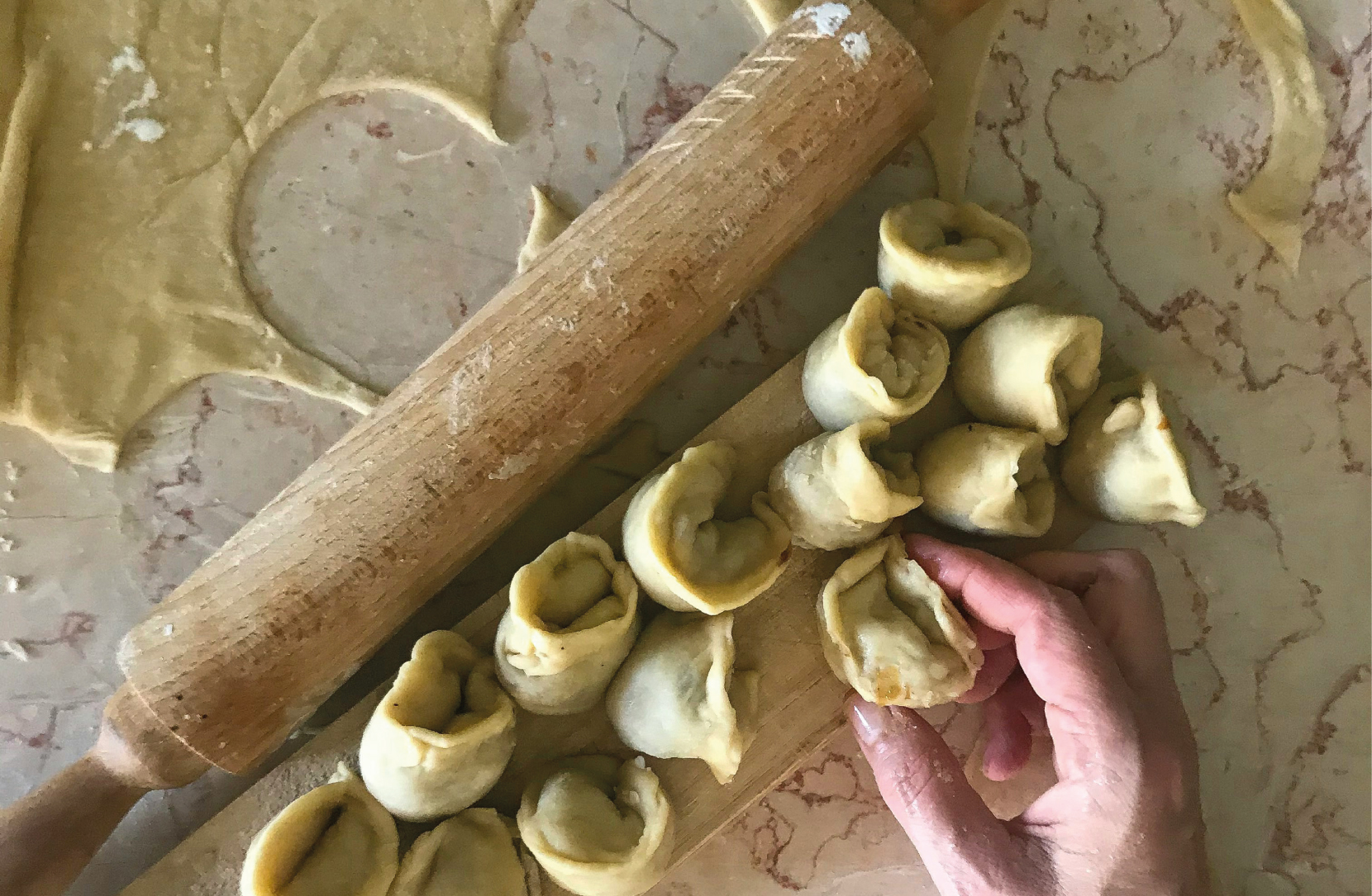 Preparation of handmade stuffed pasta, with different shapes and techniques. The filling is chosen together according to seasonality and taste.